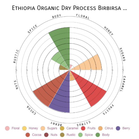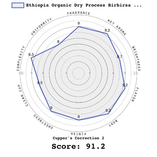 The wet aroma shows more bountiful berry notes, fruit jam, and a sweet herbal accent. Brewing yields bright fruited flavors for dry process coffee, with stone fruit qualities similar to some of the other Western Ethiopian coffees we buy. While maybe not quite the intensity of some of our Guji naturals, Birbirsa is also on the "cleaner" end of the spectrum for dry process coffee, highlighted by a long list of aromatic fruits and sweetness that aren't too rustic.